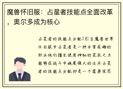魔兽世界是一款备受玩家喜爱的大型多人在线角色扮演游戏,其中牧师是一种重要的职业。在PvP(玩家对玩家)模式中,牧师的角色是支援和治疗队友,同时也能进行一定程度的输出。本文将为大家介绍如何快速提升魔兽牧师在PvP中的实力。 选择适合的天赋和专精 天赋和专精的选择对于牧师在PvP中的表现起着至关重要的作...