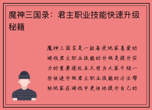魔兽地图如何解加密文章 引言 魔兽地图是一种流行的多人在线游戏,玩家可以在其中扮演各种角色进行战斗和探险。在游戏中,有时会遇到加密的文章或信息,需要进行解密才能获得有用的信息。本文将详细介绍魔兽地图如何解加密文章的方法和技巧。 1. 加密算法的种类 在魔兽地图中,常见的加密算法包括凯撒密码、栅栏密码...
